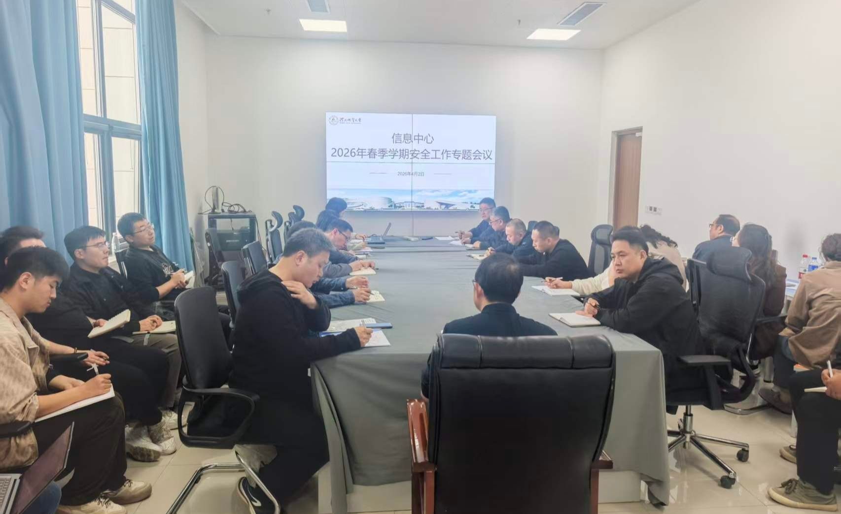 为进一步加强校园安全管理,提升信息中心全体人员的安全意识与职业素养,2026年4月2日,信息中心组织召开2026年春季学期安全工作专题会议。会议由信息中心主任李明亮主持,信息中心全体成员、驻场技术人员及服务外包人员参加会议。